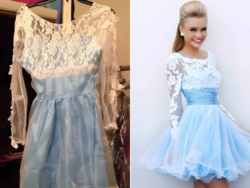 White and Blue A Line Princess Dress on Facebook/@KnockOffNightmares