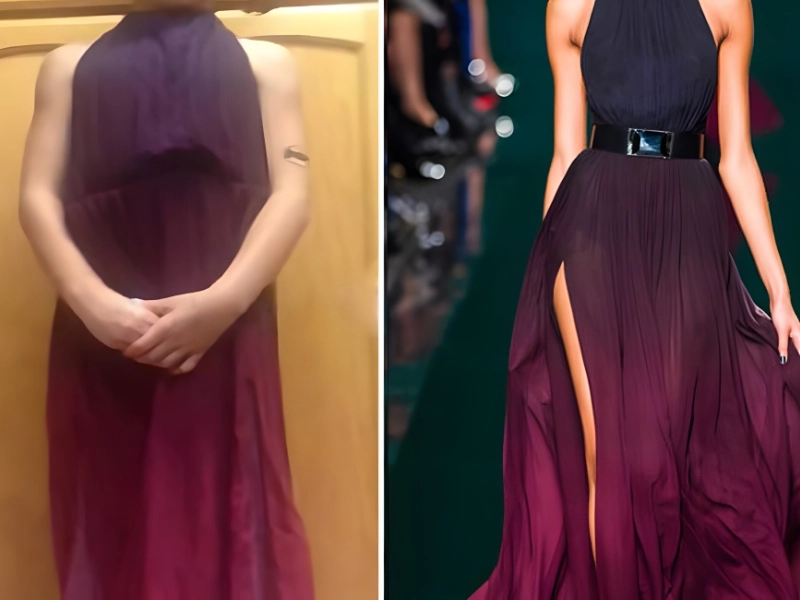 burgundy ombre gown on Facebook/@KnockOffNightmares
