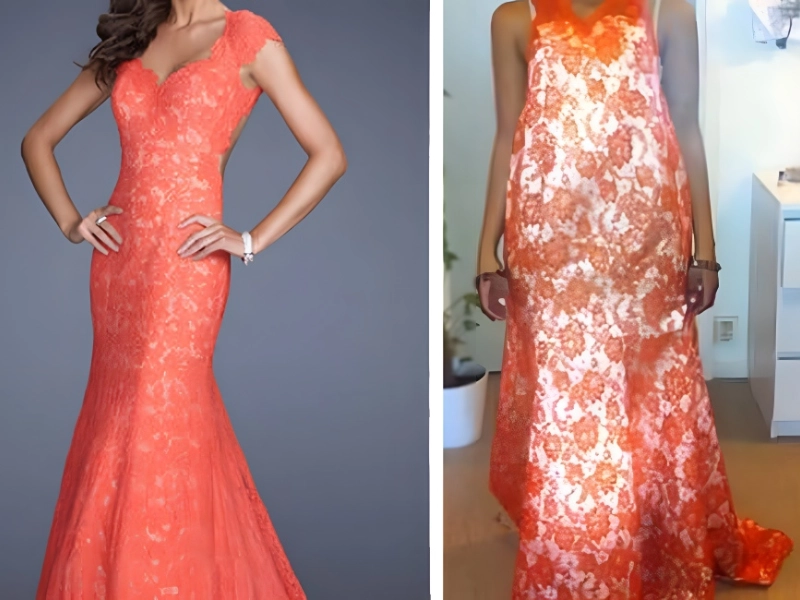 Clothes is not one of the many items that AliExpress may be used for. This website is well known for consistently falling short when it comes to dresses and other goods. In this instance, what could have been a stunning orange floor-length lace gown became a nightmare that resembles an ugly rash.