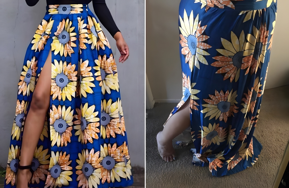 This skirt looks nothing like the one that this buyer ordered. It is way shorter and lacks a lot of printing. It looks as though this knockoff site got halfway through making the skirt and then just gave up. We hope this buyer got her money back, though we’re not holding our breath.