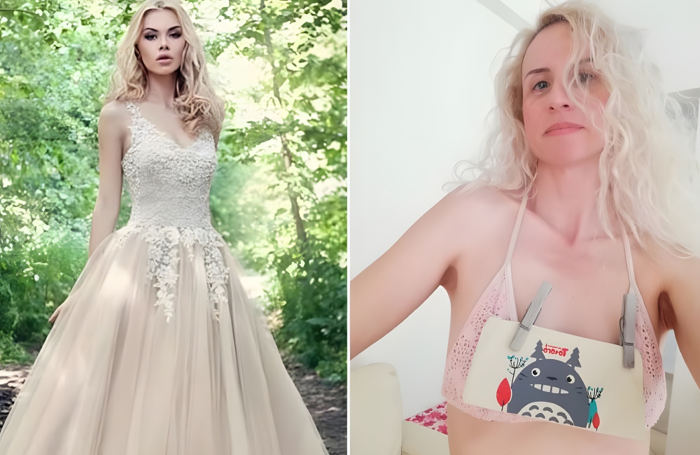 In all fairness, the look on the left was a risky one from the start. Pink roses on a wedding gown might sound romantic and whimsical, but the style on the left was always going to be hard to pull off. The corset look is old-fashioned, but there are some brides that can make it work.