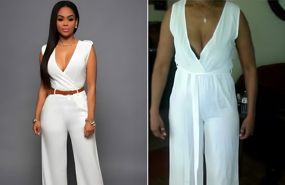 One consumer found that out the hard way when she purchased a white jumpsuit. Instead of looking elegant and stylish, the jumpsuit she received looked cheap, and the material was nowhere near what was advertised. We’re sure the knockoff site accidentally-on-purpose forgot to mention that the belt didn’t come with the jumpsuit.
