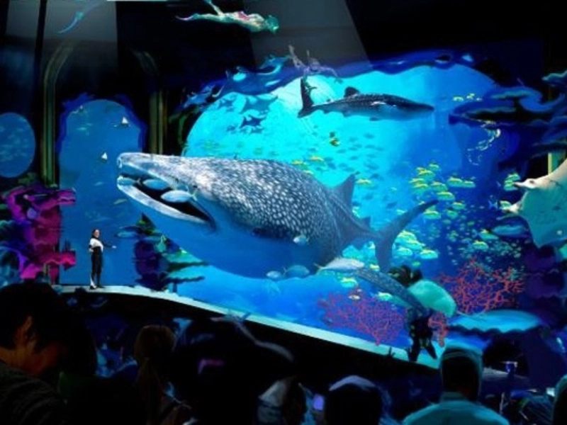 The park, which is situated in Guangzhou, is split up into eight themed sections, each of which is centered around an aspect of marine life.