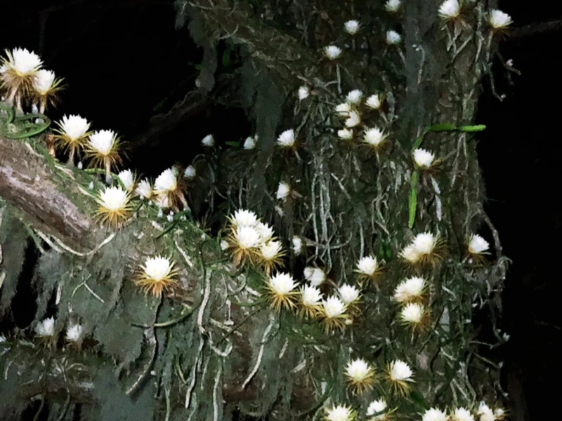 The Queen of the Night cactus’s unusual flowering schedule is among its most intriguing features. Usually opening in the dusk, the flowers—which can reach a foot in diameter—emote sweetly and intoxically. Moths and bats, two pollinators vital for the reproduction of the plant, are drawn to this nocturnal blossoming pattern.