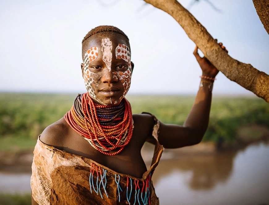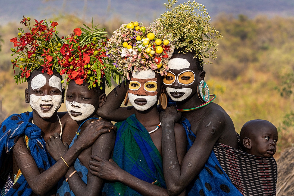 This tribe is known for its unique traditions and culture, especially in terms of body adornment. Men here can have multiple wives, and a woman’s status increases with the number of children.