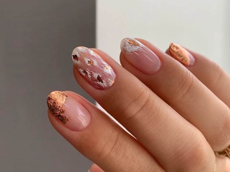 Using elegant foil techniques that accentuate copper’s natural beauty, include copper into your nail art. Using copper foil, this technique creates a variety of effects ranging from full covering to delicate accents by precisely application. Deep browns, neutral beiges, even black can give startling contrast to the metallic accents based on the foundation colour selection. To guarantee lifetime, the method calls both exact foil application and appropriate sealing. For a more subdued approach, think of designing abstract patterns or geometric shapes using the foil as an accent on one or two nails. Success depends on using premium foil and a strong glue meant especially for nail art.