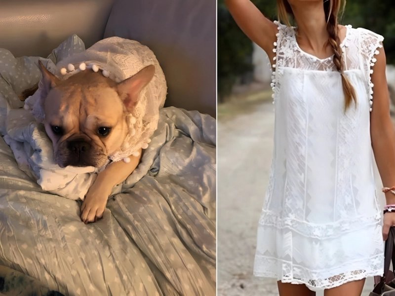 In a Reddit thread titled “Knockoff Nightmares,” a dissatisfied internet customer and Redditor bought an XL-size white dress for herself. The outfit that arrived turned out to be so small that it could only fit her dog, who doesn’t seem to enjoy dressing up.