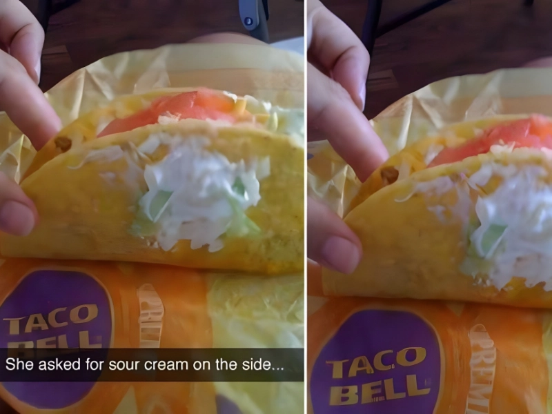 When it comes to side condiments, Yum’s Taco Bell obviously missed the memo because they just slapped mayo on the shell rather than squirting it into a convenient little container. It simply goes to show that sometimes you just can’t have what you want, even when you’re being clear!