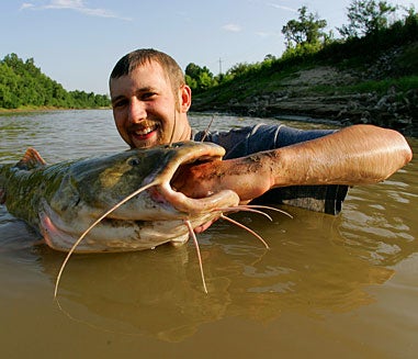 That day a local journalist interviewed Mark. He waded into the water in his hooded boots and rolled up his sleeves. He plunged his entire forearm into the water. “This is the best technique for fishing for catfish ,” he said. He didn’t take long to bite. You could see his arm being tucked under him and Mark was yelling loudly, “Look at me!” .