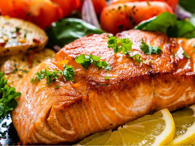 Consider low-temperature cooking techniques like sous vide, which can efficiently preserve moisture and nutrients, if you’re worried cooking might cause nutritional loss. Furthermore adding to salmon’s health advantages and flavour enhancement are herbs and healthful seasonings like olive oil and lemon juice.