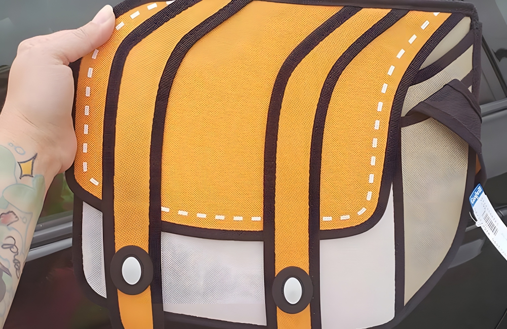 Cartoon Backpack @aInventions / PinterestThese backpacks became popular in Japan, the world’s foremost purveyor of cool, weird, and random things. The backpacks are made using bright colors and thick borders, creating a material that looks like it has been colored in with markers. This was a nice Goodwill find, as these backpacks run for $20-$30, if not more, in regular stores.