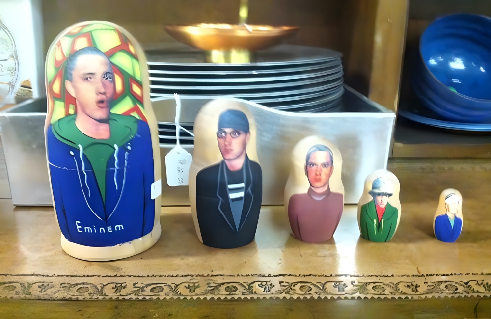 Eminem Matryoshka @boredpanda / PinterestUntil this Eminem matryoshka doll. Matryoshka dolls are a set of wooden dolls, made in Russia, that are placed one inside the other. These “little matrons” usually have a woman painted on them, or, in this case, pictures of one of the world’s most famous rappers in various outfits making different faces. If you’re an Eminem fan, this is a great find.