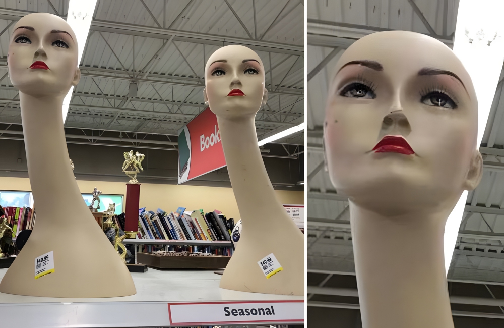 Found at: GoodwillValue: $49.99*Why these mannequin heads are so expensive is unclear. One thrift store offered a unique alternative to the good old fashioned garden gnome. If you want something more terrifying, consider these mannequin heads, which have extremely long necks and unusually resolute expressions.