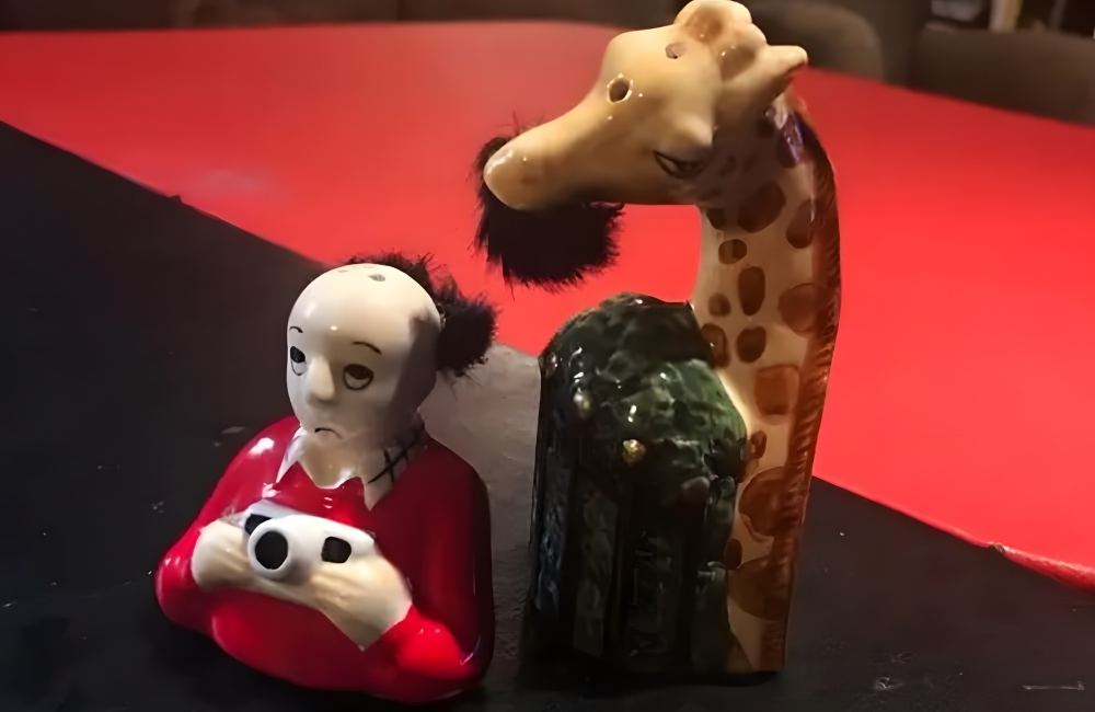 Found at: UnknownValue: $3*Alone, these pieces would make little to no sense. However, together, they’re admittedly pretty cute and funny. You can get quite creative with salt and pepper shakers, and, when it’s time for these shakers to find a new home, thrift stores often get the most unique of the bunch. This giraffe-versus-tourist shaker is a good example of that uniqueness.