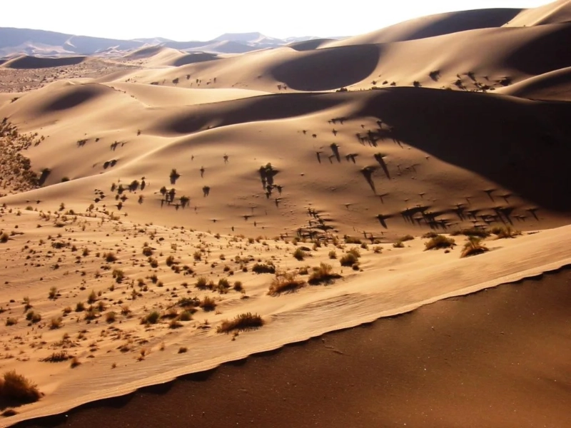 One of the oldest and most distinctive deserts on Earth, the Namib Desert stretches along Namibia’s Atlantic coast. Covering around 81,000 square kilometres (31,000 square miles), the Namib is known for its tall red sand dunes—some of which are among the highest in the world. The convergence of coastal breezes with the ancient Tsauchab River shapes the distinctive geology of the desert, producing an enigmatic and bizarre scene.Rising over 170 meters (560 feet), Dune 45 is one of the most famous sand dunes in the Namib Desert. Iron oxide in the sand produces the vivid red hue of the dune, which contrasts strikingly with the deep blue sky to create a magnificent and surreal sight. Popular among travellers for its panoramic views of the surrounding desert and chance to see the sand’s shifting hues at sunrise and dusk, climbing Dune 45 is.Deadvlei, a white clay pit encircled by some of the highest sand dunes in the world, is another strange scene found on the Namib Desert. Against the white clay and red sand, the petrified relics of ancient camelthorn trees dot the pan. After the Tsauchab River diverted its path and cut off the local water source, the arid conditions helped to preserve the estimated 900-year-old trees. One of the most photographed sites in the Namib Desert, Deadvlei’s eerie beauty and distinctive geological features appeal.The Namib Desert hosts an astonishing range of life despite its difficult circumstances. Among the various indigenous species found in the desert are the Welwitschia plant, which can live for more than a thousand years, and the Namib Desert beetle, which gathers moisture from fog on its rear. Along with a range of avian life, the desert’s coastline section hosts colonies of Cape fur seals.Unique geology and ancient landscapes of the Namib Desert offer insightful analysis of the geological past of the Earth. Under the impact of the wind, the sand dunes of the desert—some of which are thought to be over 5 million years old—are always changing and shifting. Ancient riverbeds and preserved plant and animal remains expose a dynamic and always shifting environment that has developed over millions of years.The Namib Desert is, all things considered, a site of unmatched mystery and grandeur. Anyone who enjoys the natural environment should definitely visit this place for its tall sand dunes, strange scenery, and special ecosystems. While its strong vegetation and wildlife show the amazing adaptation of life in one of the toughest conditions on Earth, the ancient geology and rich history of the desert provide a window into the past of the planet.