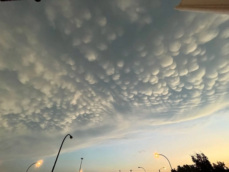 Though they are typically connected with the aftermath of thunderstorms, mammatus clouds themselves are not signs of severe weather, contrary to opinion. These clouds develop the characteristic pouch-like forms as cold, dense air pockets sink quickly through the nearby warmer air. Mammatus clouds have a distinctive downward-oriented morphology because of this phenomenon, sometimes referred to as convective subsidence, which is essentially the opposite of the updrafts creating cumulus clouds.