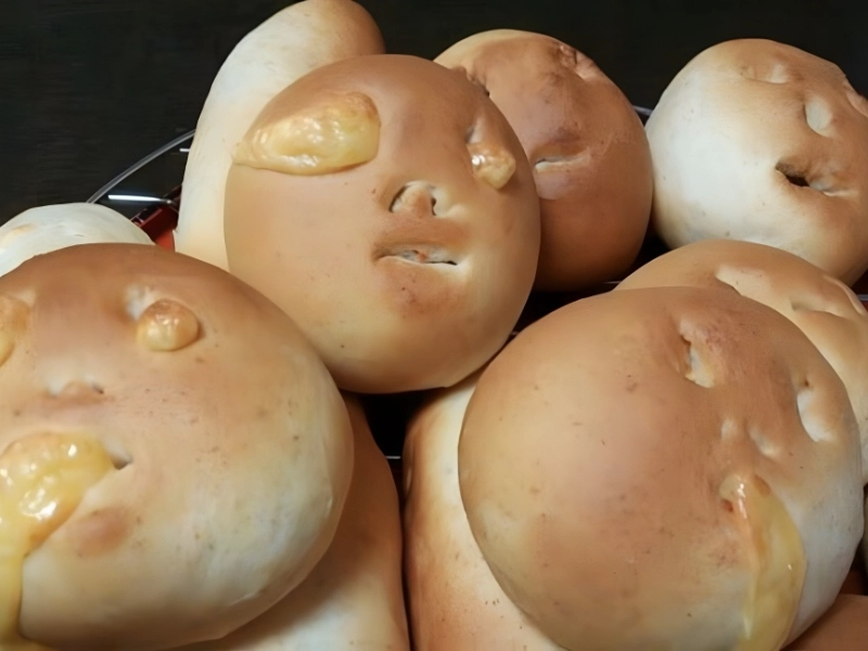 Baking is always a gamble, particularly for the novice, as an uncalculated measure could yield a completely different outcome than you had intended. This individual experienced this as all of their filling seeped out of these buns, which were meant to resemble happy faces.