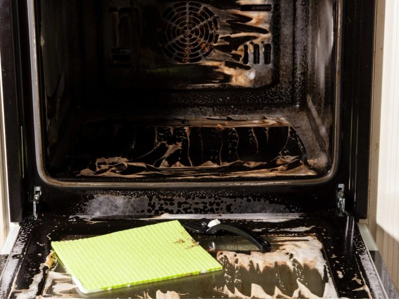 Although the dishwasher tablet solution does most of the heavy work, some areas could call for a little more care. Here is where scrubbing’s artistic value comes forward. It’s time to attack any last tough stains once the cleaning solution has been let to sit for 15 to 20 minutes. Wipe off the surfaces with a soft sponge or microfiber cloth starting gently. By now most of the filth will probably come away readily. For places that want extra attention, gently press to force the cleaning solution into the residue using circular motions. Remember, the cleaning agents should handle most of the tasks; so, try to avoid vigorous scrubbing that can ruin the surface of your oven. You might use an old toothbrush or a non-abrasive scrubber for especially tough stains. These instruments can assist you in reaching areas where dirt like to hide—crevices and corners. Try directly putting a tiny bit of the dishwasher tablet solution to a place that is still resisting your efforts and letting it sit for another 5 to 10 minutes before scrubbing once again. Approach this procedure patiently and relentlessly. While some areas could call for several tries, you should observe progress every pass. Particularly pay close attention to the corners of the oven, the area around the oven door seal, and any ridges or indentations where grease can gather. Periodically stand back as you work to evaluate your development and make sure you haven’t overlooked any areas. Effective scrubbing is mostly dependent on methodical, thorough effort that pays particular attention to trouble areas without overloading yourself or running the danger of surface damage to your oven.
