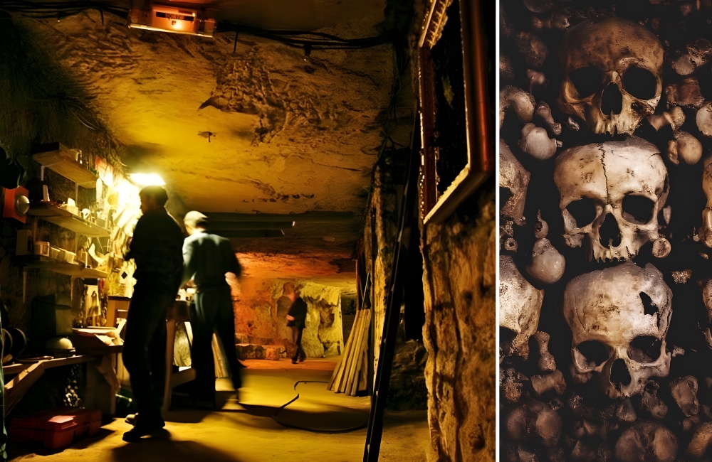The Paris Catacombs are a labyrinth located in the heart of France. The Catacombs were built when the city needed a better location to store the dead. So, Paris chose tunnels, five stories underground, into which they emptied bodies beginning in the late 1700s.