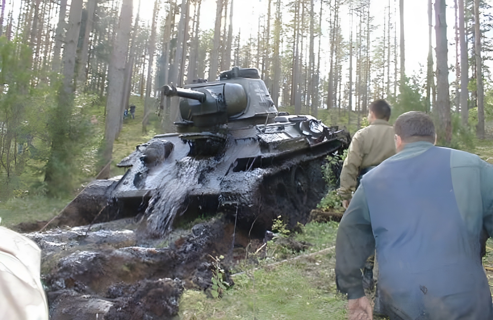 Emerging from the depths, at the other end of the rope was a Soviet-built T34/76A tank stood as a haunting reminder of the past. Kasper’s discovery was one of happenstance. The reason behind the tank’s location, or how it got there, however, is still anyone’s’ guess.