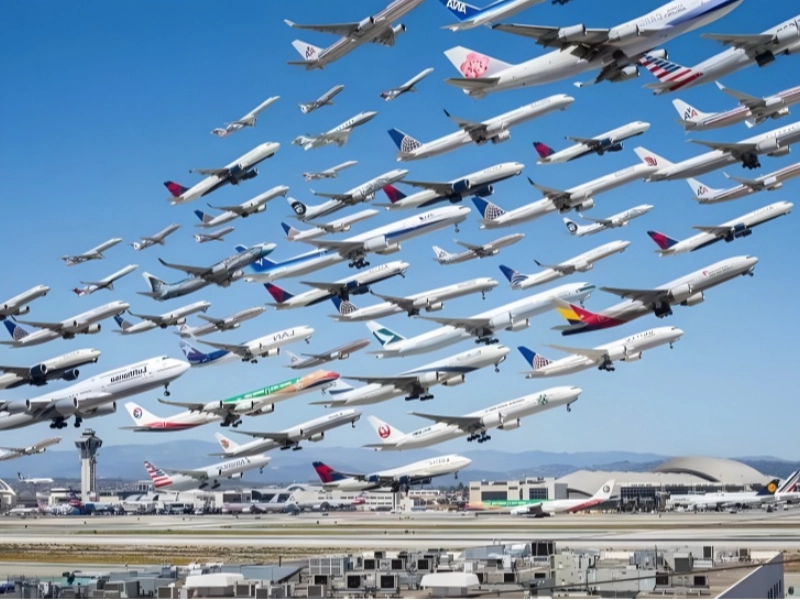 Whether you are frightened of flying or not, looking at this photo will give anyone a panic attack. This is a serious violation of aviation safety regulations, and a catastrophic accident is almost a given. Fortunately, photographer Mike Kelley only altered this photo. The artwork, which he called “Wake Turbulence,” shows every plane leaving Los Angeles International Airport (LAX). It was created by doctoring together 400 separate photos.