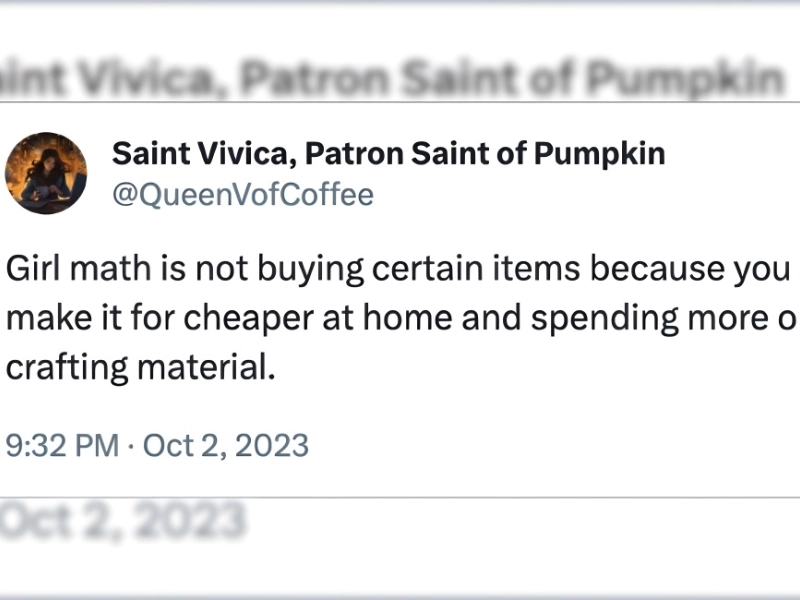 For example, if you believe a $40 red velvet cake is simply too pricey, lady math says you should buy the materials for it for $60 and bake it at home. It implies that you made financial savings!