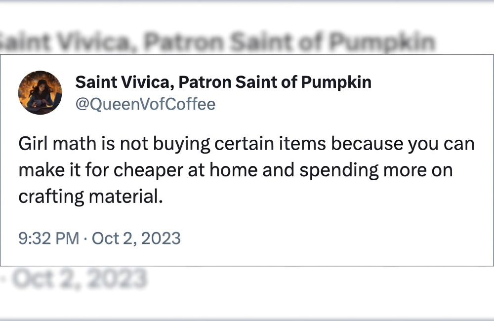 Girl math is pretty simple when it comes to the dilemma of buying things whole and buying them in parts: if a particular item is just too expensive to buy as a whole, you buy its ingredients and tools instead and make it at home, even if it means spending considerably more money on the parts as compared to the whole.