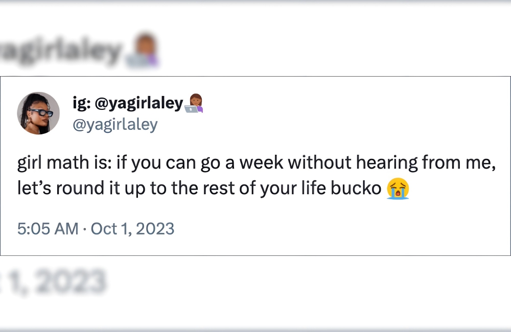 Girl math isn’t always delusional: it sometimes prompts you to make efficient life choices that can determine the course of your friendships and relationships. One of these practical choices is thinking that you do not need to contact someone because you spent a week without them because they certainly aren’t that big a part of your life!