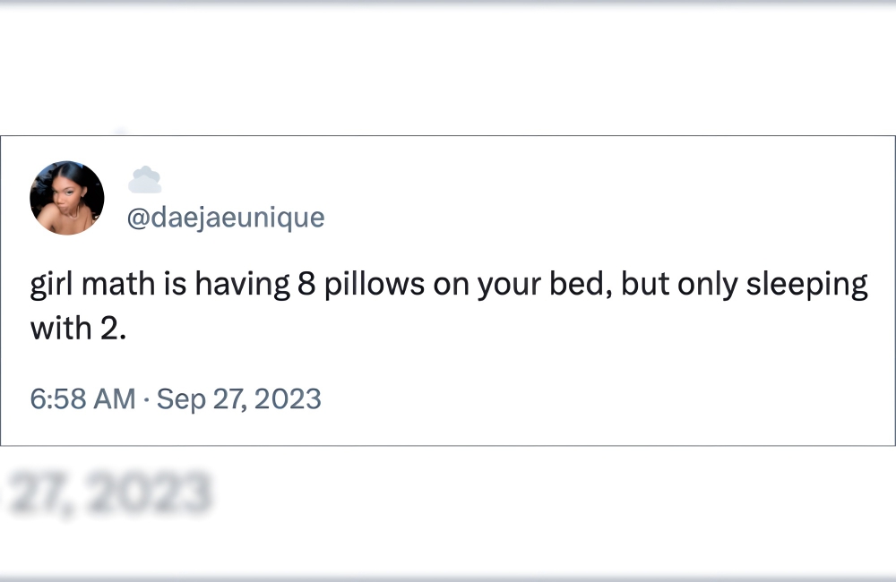 Girl Math: Putting 8 pillows on your bed and sleeping with only 2