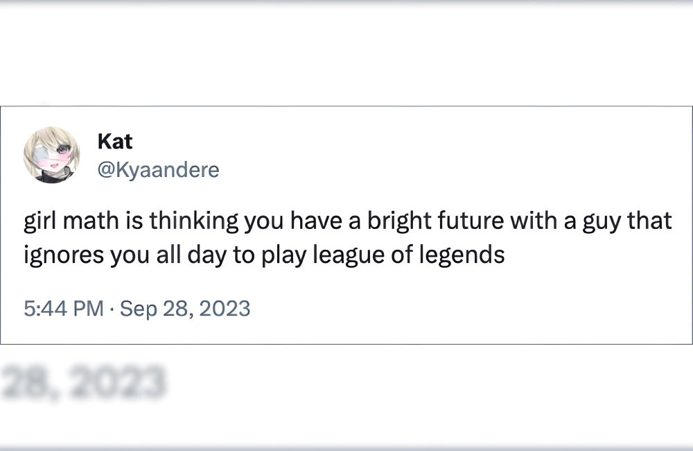 We won’t say girl math is always practical: it may sometimes allow you to daydream while doing the menial tasks of life and imagine a healthy, loving life with your crush who does nothing but play League of Legends and ignore your text messages all day.