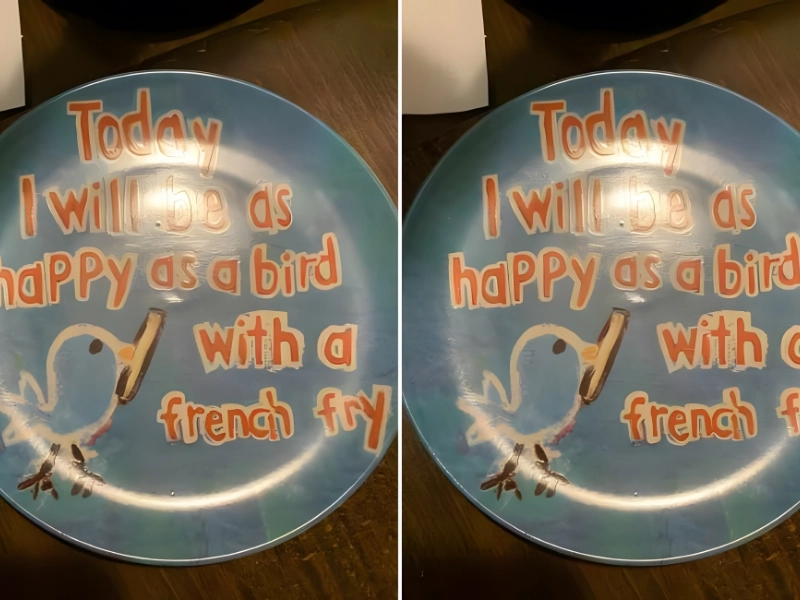 Reddit/ThriftStoreHauls/Bird Plate Dieses Vögelchen kommt, um Ihnen zu raten, glücklich zu sein, damit Ihre Morgen schöner werden. Pommes machen die Menschen schließlich glücklich, egal zu welcher Tageszeit sie serviert werden. Es tut uns leid, dass jemand dieses Gericht aufgegeben hat, aber wir freuen uns auch, dass jemand anderes ihm ein wunderbares Zuhause geben konnte.
