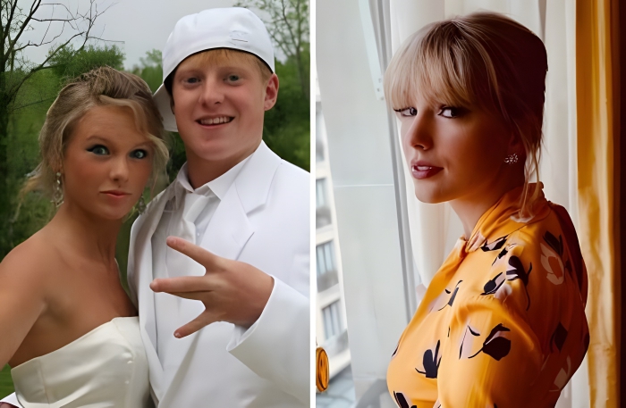 It wasn’t long ago that Taylor Swift went to her high school prom. She looks almost the same as she did ten years ago. We wonder if any of her early songs were about her prom date. His flat-brim hat and hand symbol say a lot about him.