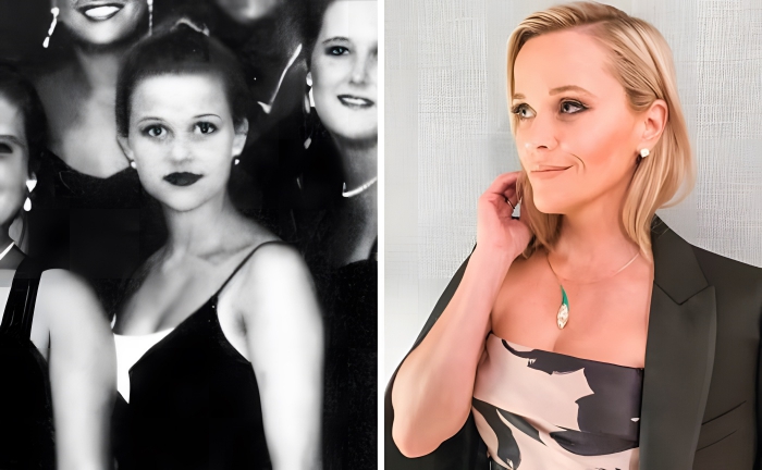 Reese Witherspoon is a well-liked actress and super talented. Her photo from prom shows her young self surrounded by friends, and she looks pretty much the same as she does today. Her dress looks simple and chic, much like her style today.