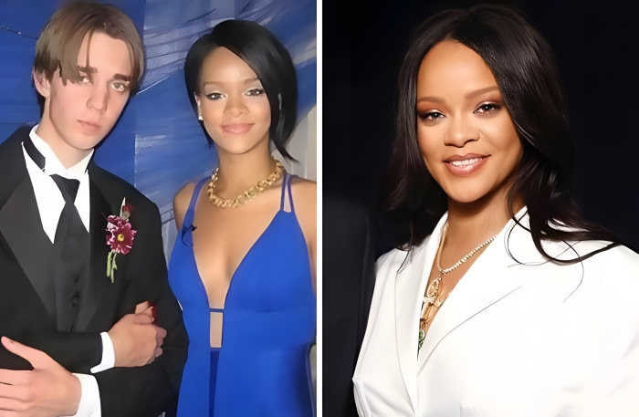 At 32 years old, Rihanna looks almost the same as she did when she was in high school. The multi-platinum recording artist and business owner looked terrific at her high school prom. Her royal blue dress looks like something she would wear to a red carpet event today. It is actually very similar to a red dress she wore back in 2011 to the Grammys.