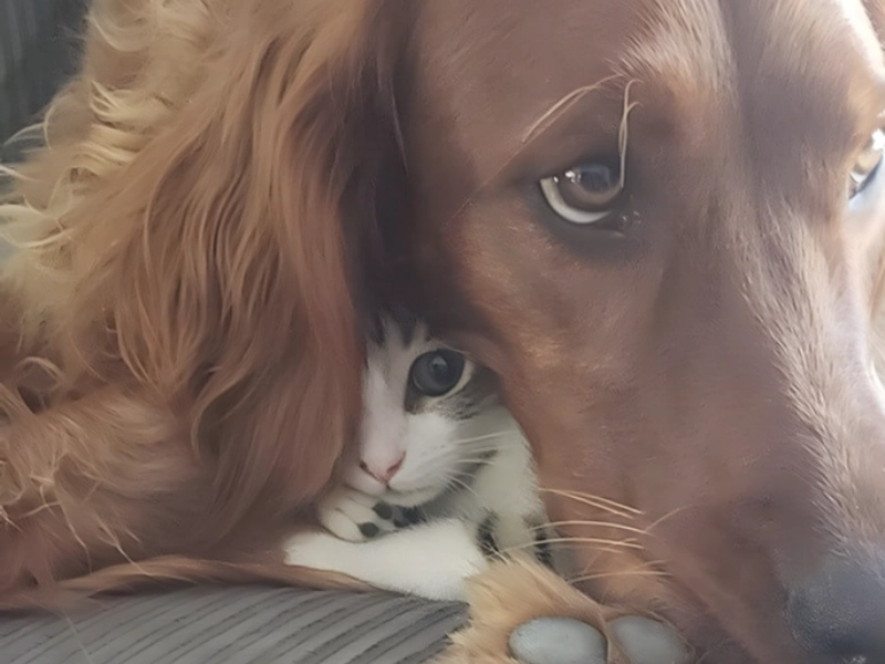 Natural leaders of their homes, cats typically create a clear hierarchy not only with their human carers but also with their other pet friends. This specific case highlights a funny attempt at inter-species cooperation—or maybe coercion. Presumably avoiding some kind of parental intrusion, the cat decided the house dog would be a great makeshift concealing screen. The scene that results is a masterwork of failed stealth, with the dog faithfully resting his head on the cat in what must have seemed to be a perfect concealing technique to our feline acquaintance. Actually, though, the reality is far from the optical illusion the cat was trying for. The basic weakness in this concealment effort reflects a typical pet misconception: certainly we cannot see them if they cannot see us. For the cat, unfortunately, the dog’s attempt at concealment simply made the hiding place more conspicuous and endlessly more entertaining. Indeed, dear cat, we can readily see you and your canine friend isn’t helping things along. Generally speaking, if you can see us, we can probably see you as well; this idea tends to elude our feline companions very frequently.