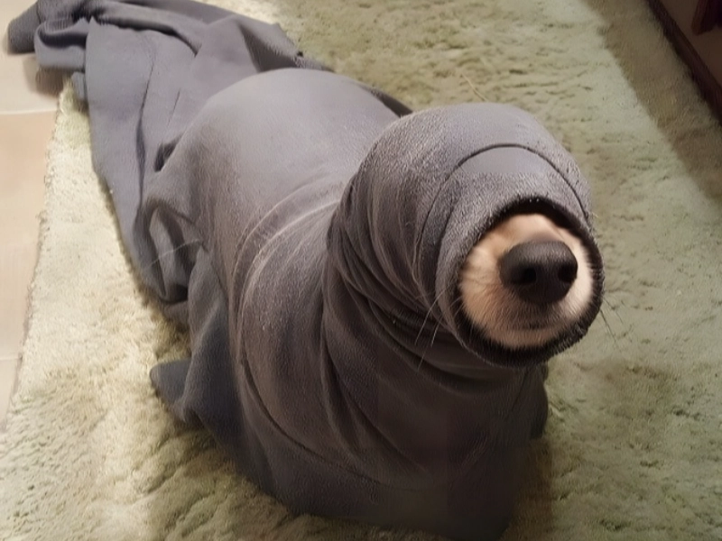 Though there are many ways to master canine hiding, maybe none are as charming as the blanket or towel approach. Dogs have been seen trying to hide behind different things or beneath furniture, but this specific method highlights an interesting side of dog psychology. The dog perspective seems to be firmly rooted in the conviction that invisibility may be attained just by covering oneself with cloth. Though their unique nose is obviously apparent, this cute puppy, standing boldly under a towel, really thinks they have excellent camouflage. The change is so funny that it produces an unanticipated optical illusion, rendering our furry companion what looks to be a seal living in a bathroom. From the form the draped towel creates to the exposed snout peeking out under, there is an amazing similarity. This inadvertent cosplay helps us to understand why dogs still amaze and amuse us with their naive logic. Looking only at a basic towel or blanket, nature’s ideal seal costume can let you decide what costume you would force your dog into this next year.
