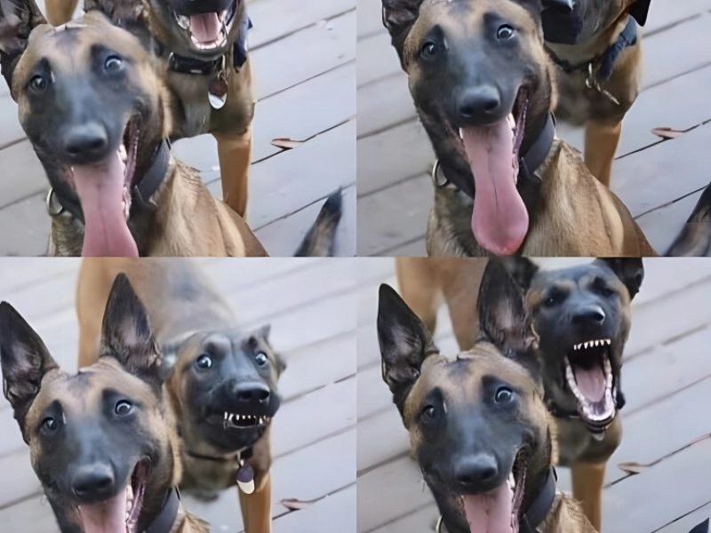 Someone in this picture of another pair seems envious. In just four frames, the dog in the rear moves from inquisitive to enraged. Though we’re not sure exactly what happened, the dog might have smelt someone else. Better still, another dog’s aroma. If such is true, that would be funny. The dog in the front’s lack of response also makes these pictures absolutely golden.