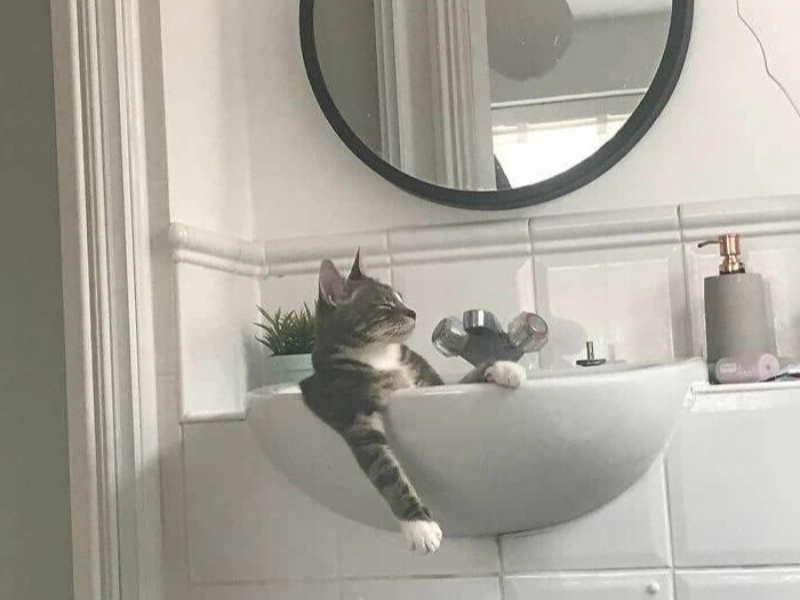It’s difficult to say if this cat is simple-minded or genuinely highly bright. Ultimately, this is a really decent technique to acquire some water for the cat if it is thirsty. On the other hand, if that tap is turned on, they will most likely nearly drown in water. Thus, it’s possible that the cat is intelligent; they simply require some direction.