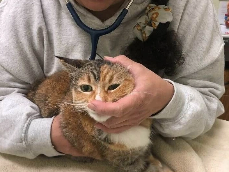 That cat is quite content, drowning out the sound of its heartbeat with its purring. In an effort to hear the cat’s heartbeat, the veterinarian had to cover its mouth.