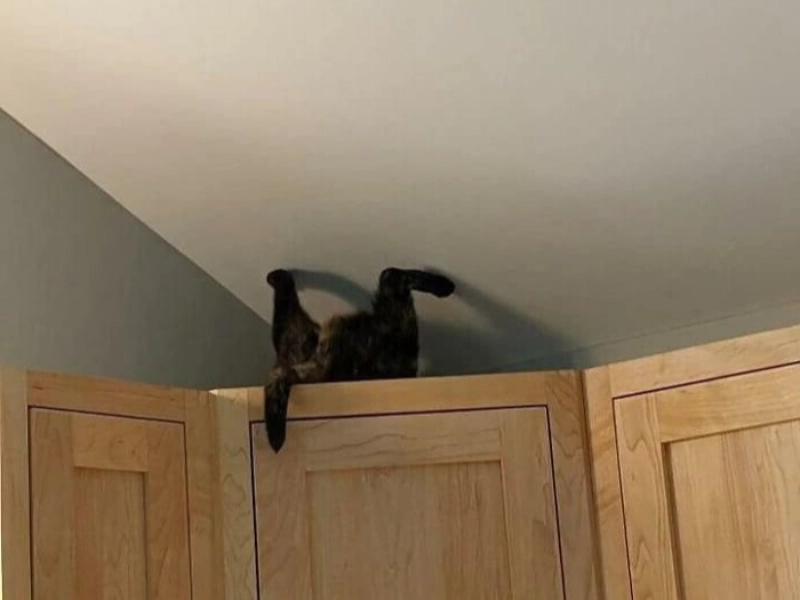 Cats are strange animals. You can never be completely sure of what’s going through their minds or the motivations behind their actions. Ultimately, it defies logic for them to repeatedly knock items off the counter for amusement, yet they do it nevertheless. Furthermore, it defies logic for a cat to scale a wardrobe and then sit there upside down with its legs raised.