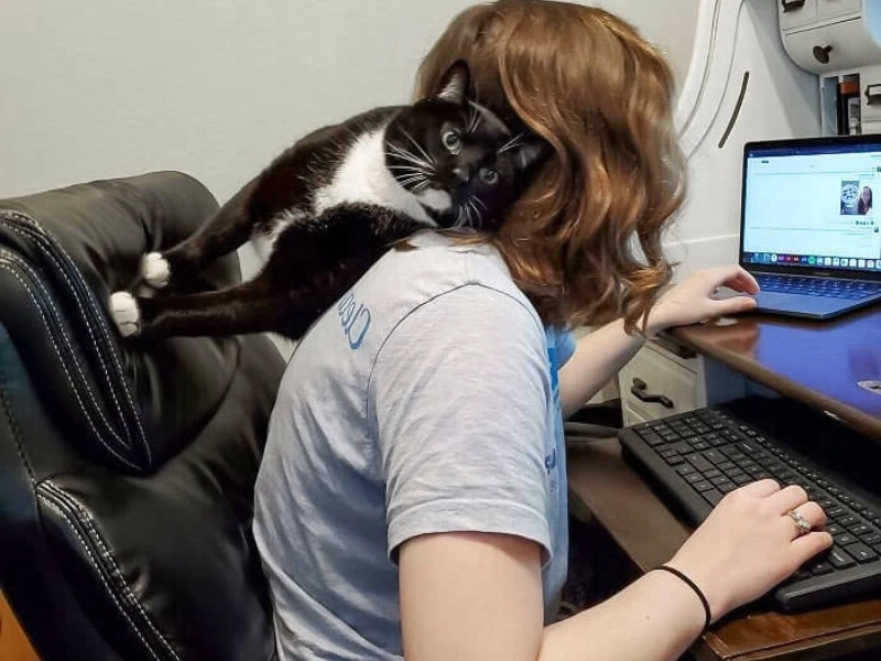 Clingy is taken to a whole new level by this cat. Despite her intense love for her, her owner found it difficult to complete her tasks while the cat sat on her lap. The cat took matters into her own hands by being inventive because she did not enjoy the idea of not being able to sit on her owner’s lap. That being said, she made no mention of lying on her back. That’s just the location the cat chose to go.