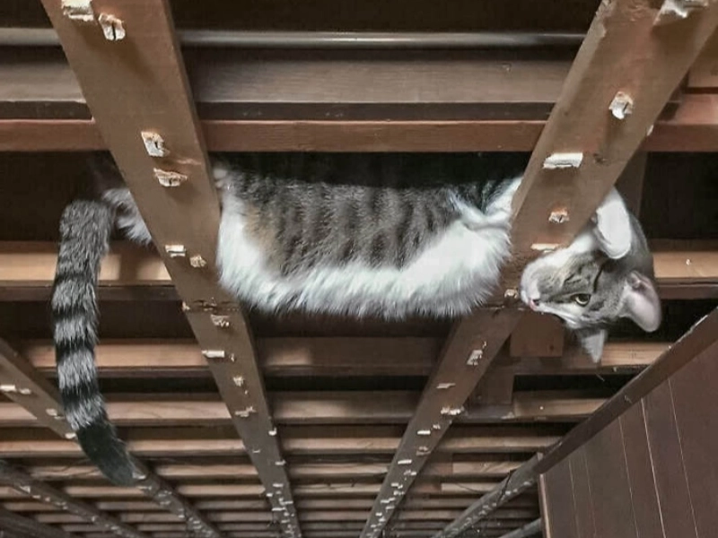 Cats will definitely take advantage of every opportunity they can to position themselves awkwardly. This cat had every chance in the world to just kick back and enjoy the day while sitting in his owner’s home. Nevertheless, the cat decided on aggression and entered the basement where the ceiling was being replaced. He insisted on fitting himself into a few of the gaps.