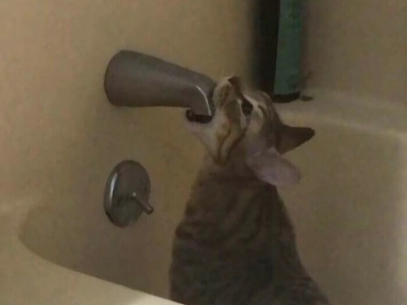 It’s possible that the cat was just interested in biting into the large, shiny metal object in front of them and had no intention of drinking at all.