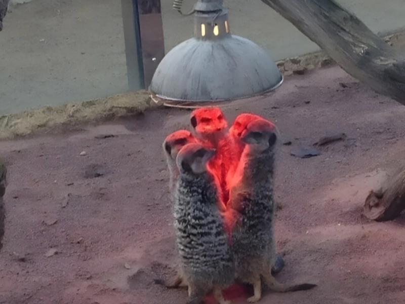 Actually, a troop of meerkats is trying to warm themselves under a lamp! Should you neglect a double-take, you may easily misread this picture.