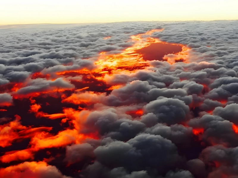 Volcanoes have always been both a cause of awe and terror. But supposing we informed you the “lava” in the picture isn’t really hazardous? Indeed; it’s merely a collection of clouds shaped like molten lava. This merely emphasises how misleading appearances could be. True lava can burn severely, but these clouds are very safe. Thus, inhale deeply to appreciate the vista.