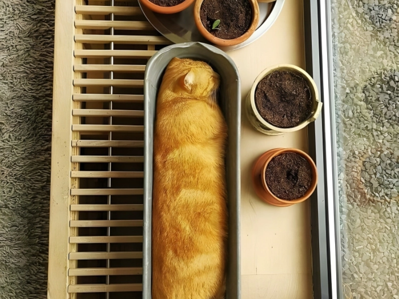 Though you could have assumed you were looking at a freshly made baguette or cake, have a closer look and you will find a small feline asleep in a tin designed for plants! This cat apparently discovered the ideal place to nap. Given that it appears they won’t be able to transfer those pots anytime soon, their owner might not be really delighted.But when a lovely, fuzzy loaf of kitten consumes all the space, who can blame them?