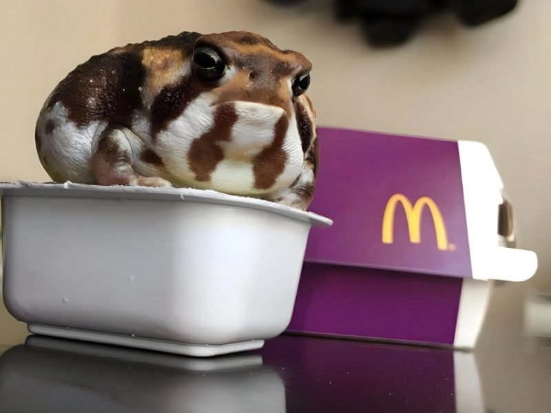 Though at first sight that frog clearly resembles a vanilla and chocolate swirl McFlurry, it may not be true ice cream! We simply hope none of anyone tried to bite it really.