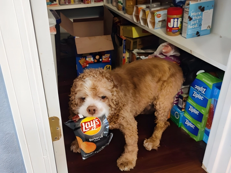 The sole issue is that this cocker spaniel didn’t understand that, when attempting to be as quiet as a mouse, chip packets most likely aren’t the ideal things to grab. But who else matters?
