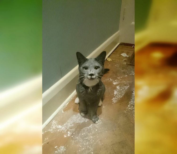 The cat decided to cook something for himself too.