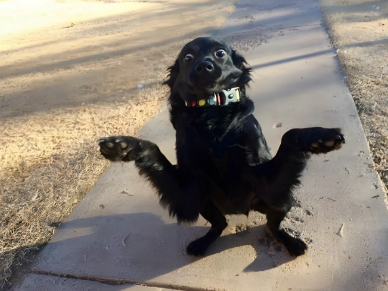 Although we’re not entirely certain about what’s happening here, one thing is certain: this photo is both funny and lovely. Is this furry companion trying to shrug its shoulders somewhat like a human would? Perhaps he is not sure where his toys disappeared to. Its bewildering gaze and the confused sparkle in its eye would imply that this dog is precisely doing. Alternatively maybe he’s trying to replicate his best starfish impression?